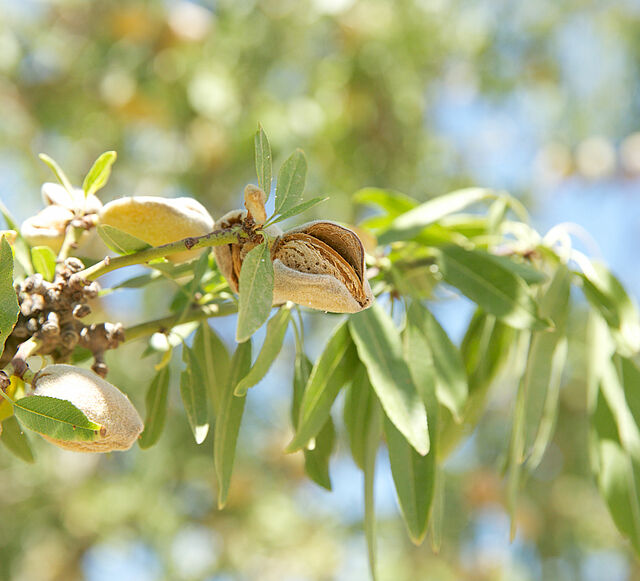 The almond (Prunus dulcis, syn. Prunus amygdalus) is a tree species originating in the Middle East as well as in North Africa and the Indian subcontinent. The name also refers to the tree’s edible seed that is nowadays extensively produced around the world. The almond belongs to the genus Prunus and together with the peach, belongs to the subgenus Amygdalus. This particular subgenus distinguishes itself from others because of ridges on the shell that surrounds the seed.