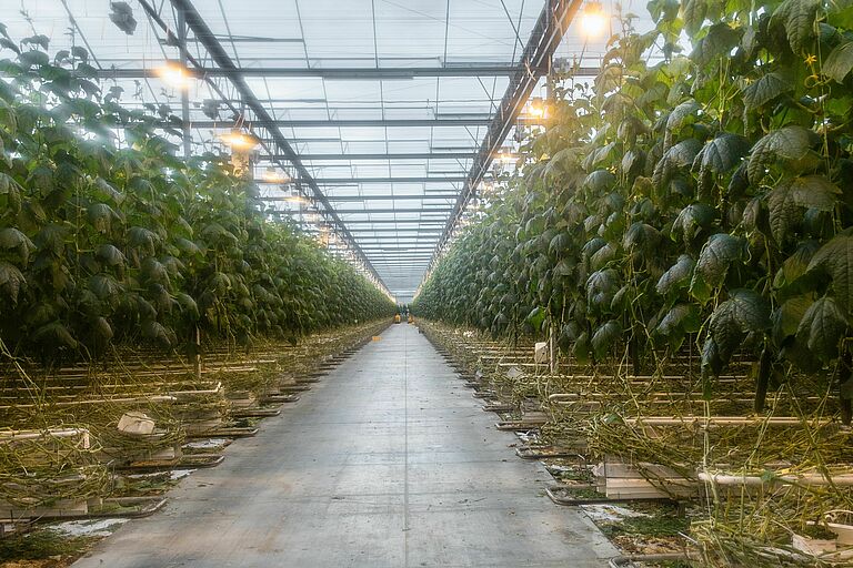 Together with Stefan Wubben, Kees Hendriks runs a farm covering over six hectares along Hoefslag road in the Dutch village of Pijnacker. Built in 2011, the farm has two sections. Hendriks grows high-wire (two crops per year) under high-intensity lighting (190 micromol). He sells his cucumbers to some major retailers in the Netherlands and occasionally to customers in Germany.