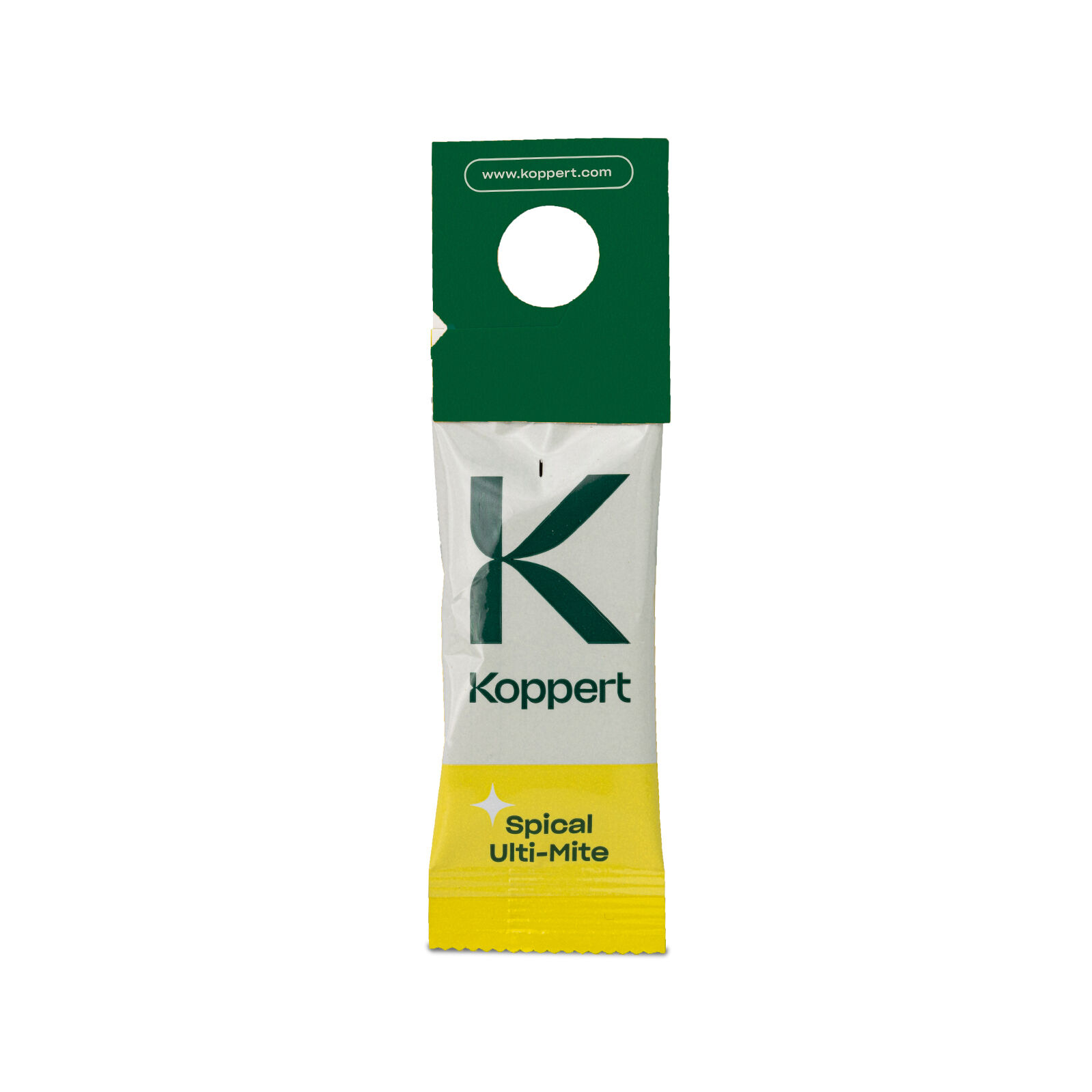 The dosage of Spical Ulti-Mite depends on climate, crop and pest density and should always be adjusted to the particular situation. Start introduction preventively or as soon as the first pest mites are detected in the crop. Use at least 4,000 sachets per ha and hang them evenly spaced in the crop. Release should be repeated after 4-6 weeks if the pest is not controlled. Consult a Koppert advisor or a recognized distributor of Koppert products for advice on the best strategy for your situation.